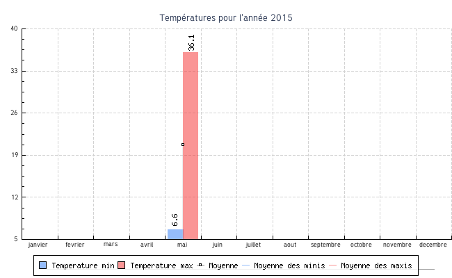 | mai | 6.6 °C | 12.3 °C | 36.1 °C | 29.9 °C | 20.7 °C | 3.6 km/h | 27.0 km/h | NO |